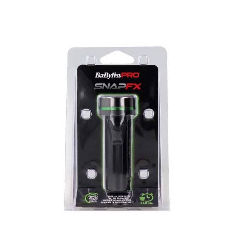 Más tiempo de corte y mejor con la batería de repuesto para cortapelos SnapFX de BaBylissPRO. Esta batería con un 30 % más de capacidad y un indicador LED verde le ayuda a centrar su atención en sus clientes. Disfrute de un estilo inalámbrico, una velocidad constante y un tiempo de funcionamiento infinito con solo colocar y extraer las baterías.