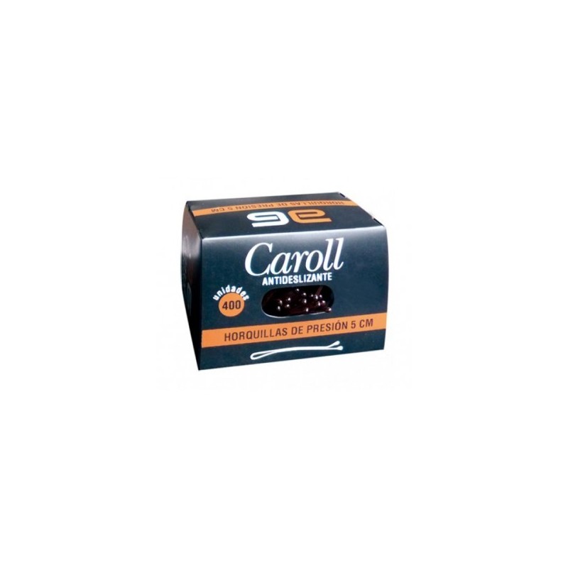 Horquillas de presión Caroll Antideslizantes de color marrón, 5cm. Las Horquillas antideslizantes Caroll están cubiertas con una pintura especial antideslizante para que tus peinados duren más. Además su forma ligeramente curvada hace que el clip se sujete mejor al cabello. La bolita el extremo de la horquilla evita daños en el cuero cabelludo.Caja de 400 Unidades