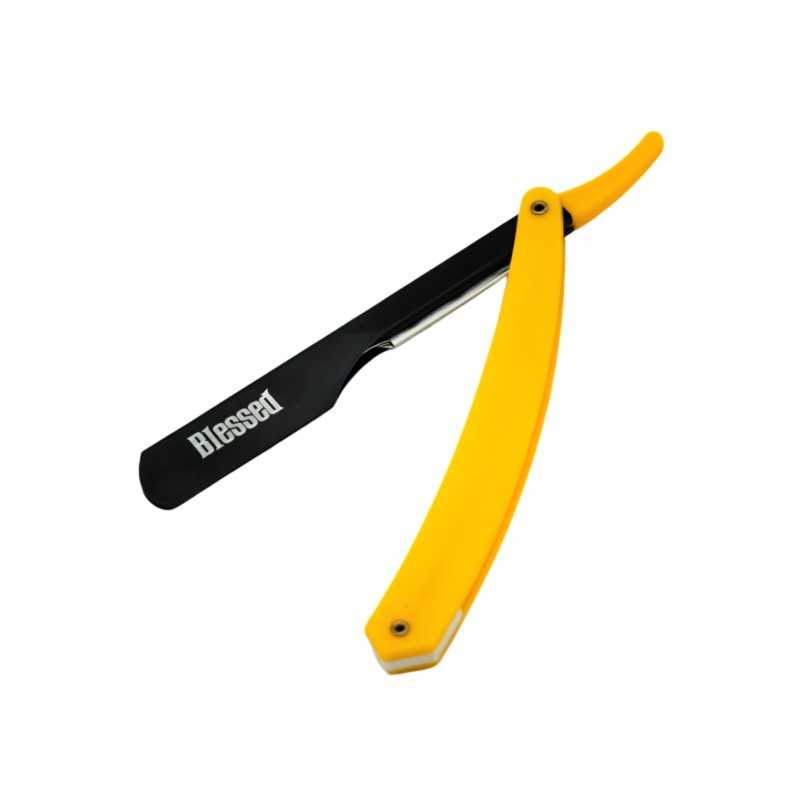 Navaja carril amarilla con mango de plástico. Ligera, precisa y fácil de usar. Ideal para barberos que buscan agilidad y funcionalidad diaria.