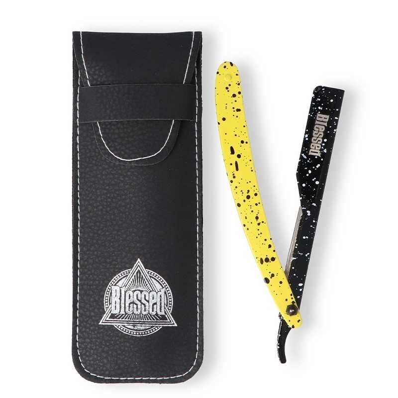 Blessed Navaja Afeitar Neon Negro y Amarillo. La Navaja de Afeitar Blessed Neon Negro y Amarillo combina estilo moderno y precisión profesional. Fabricada con acero inoxidable de alta calidad y mango ergonómico bicolor, ofrece un afeitado limpio, suave y controlado. Ideal para barberos exigentes que buscan rendimiento, comodidad y diseño en una sola herramienta.